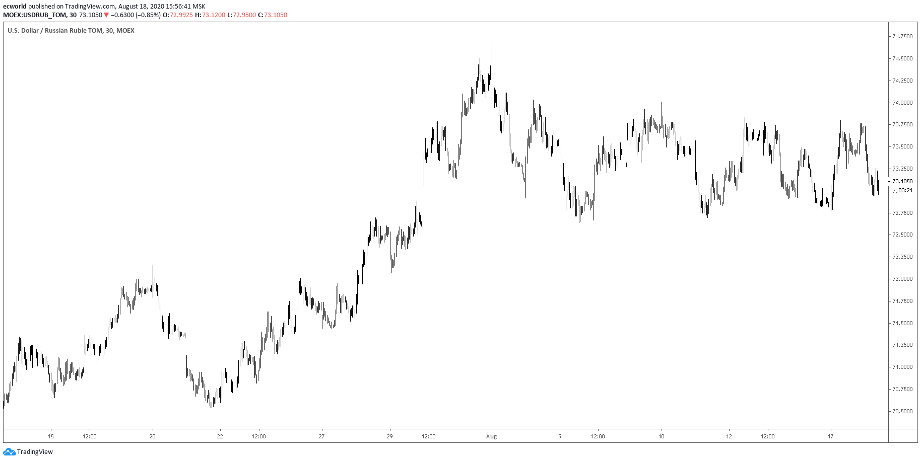 А тем временем доллар-рубль обновил локальные максимумы летних месяцев и вернулся к значениям, которые мы последний раз видели в мае. В пятницу доллар снова стоил 75 рублей (мы не видели таких значений с 6 мая), а евро - 88,30 рублей (мы не видели таких значений аж с 30 марта - дней, когда рубль падал максимально глубоко за последние 4 года.