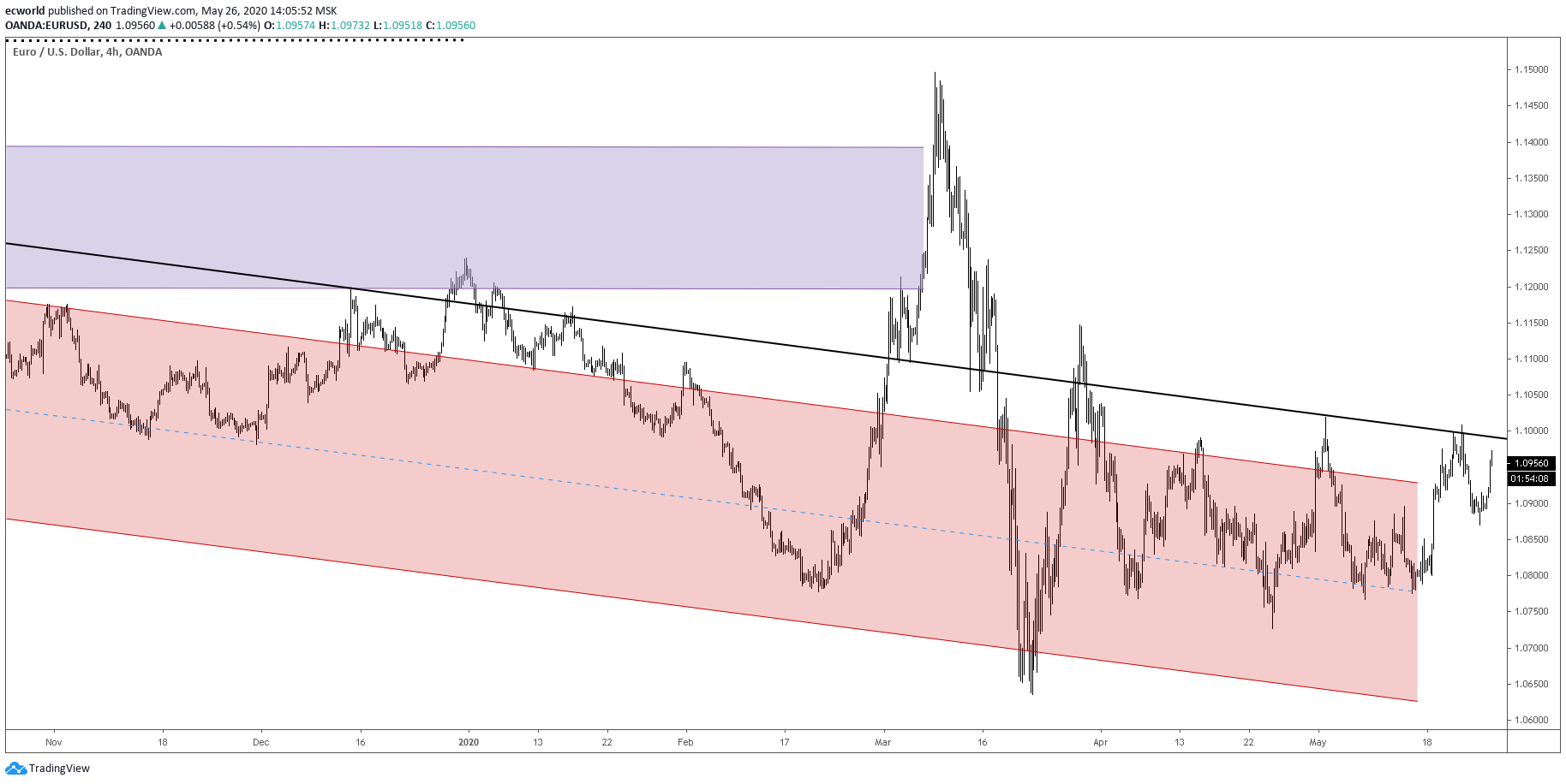 Возможно, будет еще одна попытка ухода вниз (к нижней границе диапазона 1,0890 - 1,0780), но с большой долей вероятности, текущая попытка -