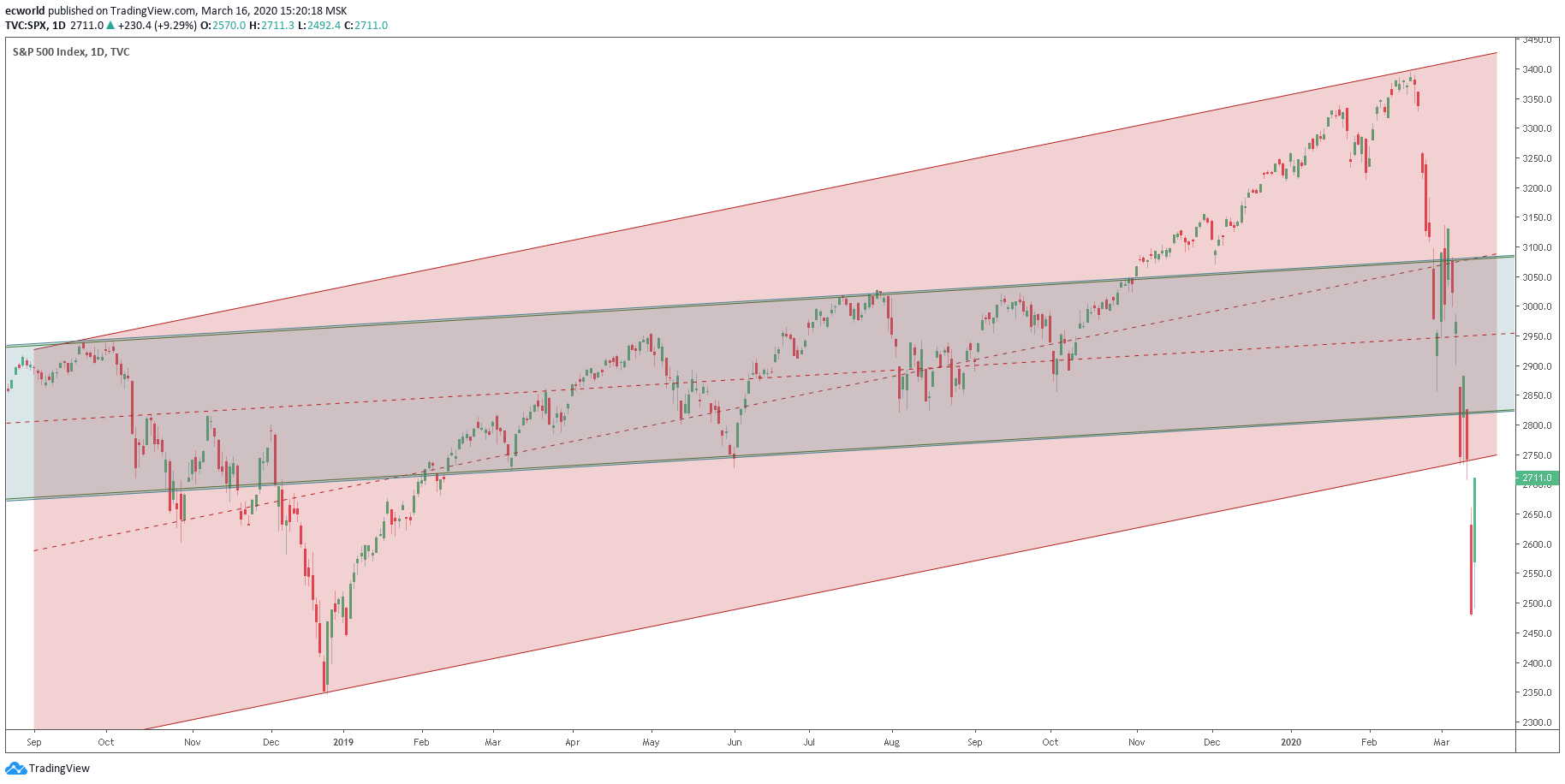 На фоне вчерашних действий ФРС (решение о вливании порядка 1 трлн долл ликвидности) и чисто по техническим причинам рынок сегодня отскакивает. Американский рынок (SP) на предторгах растет в моменте на +5,5%, нефть почти на +6%.
