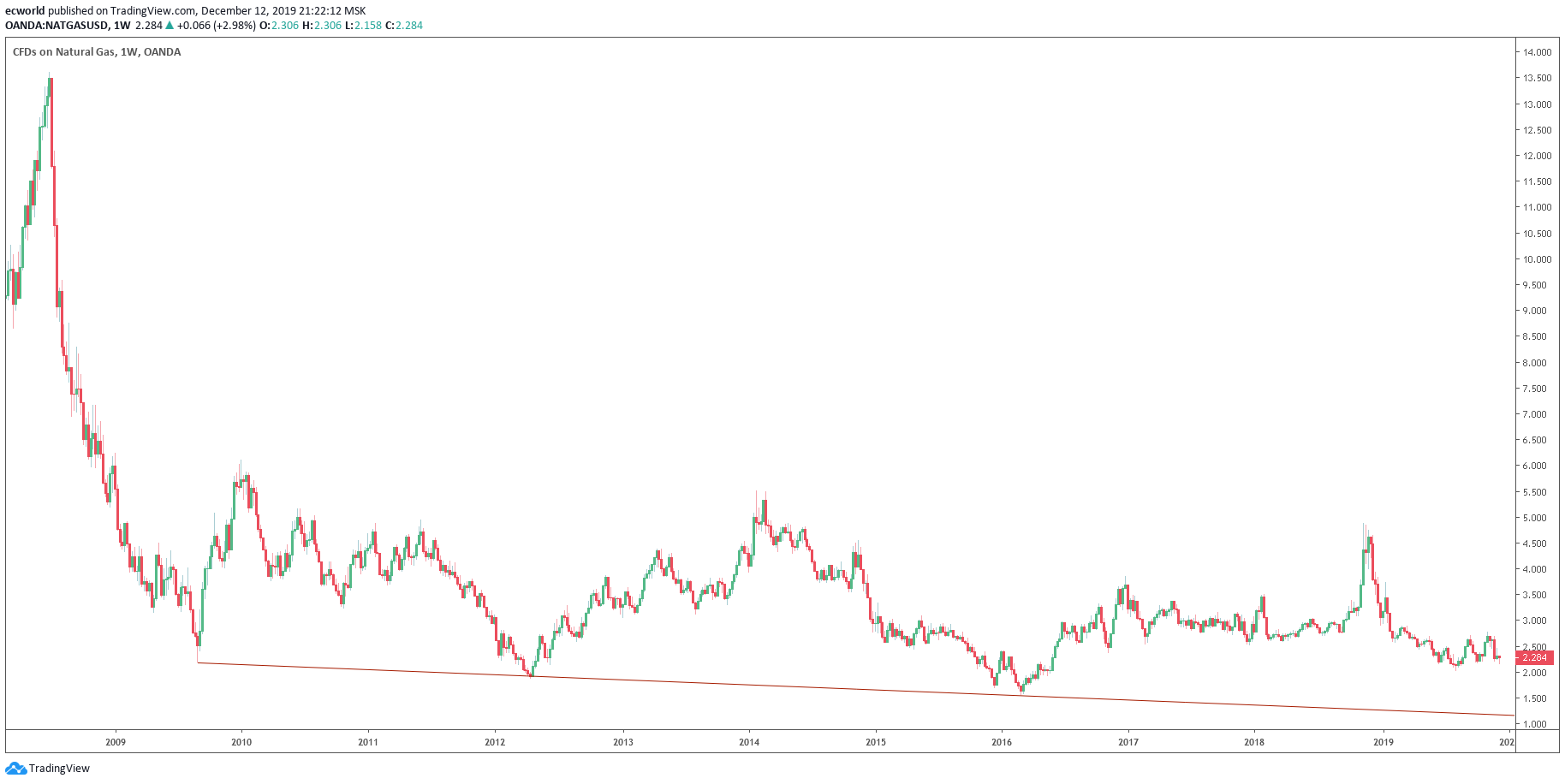 На прошлой неделе готовил запись о ETF / ETN и прочих инструментах с базовым активом "газ", так как, если цикл падения не разовьется, через какое-то время они могут стать актуальными, как статистически (см. первую ссылку выше), так и по фундаментальным причинам - именно с точки зрения среднесрочных и долгосрочных историй, хотя чисто технически дно цены там могут показать почти вдвое ниже к 4 кварталу 2020 года: