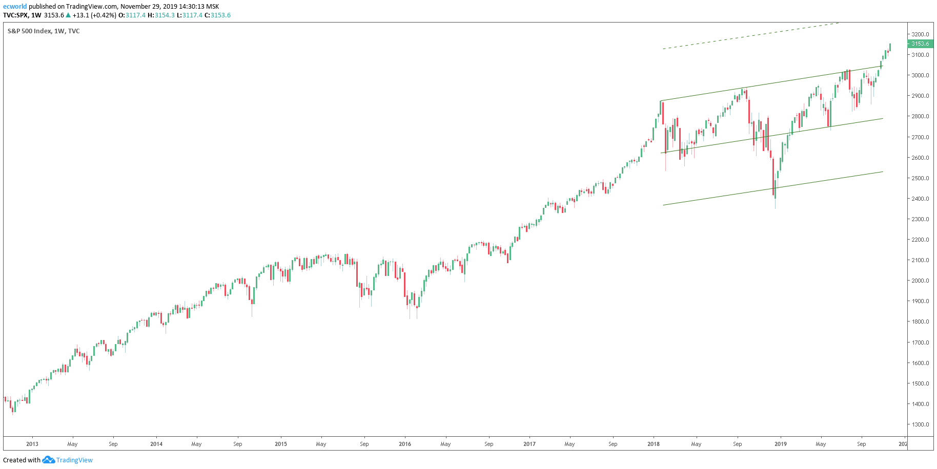 Если мы посмотрим в целом на фондовый рынок и его ключевой индекс - SP: