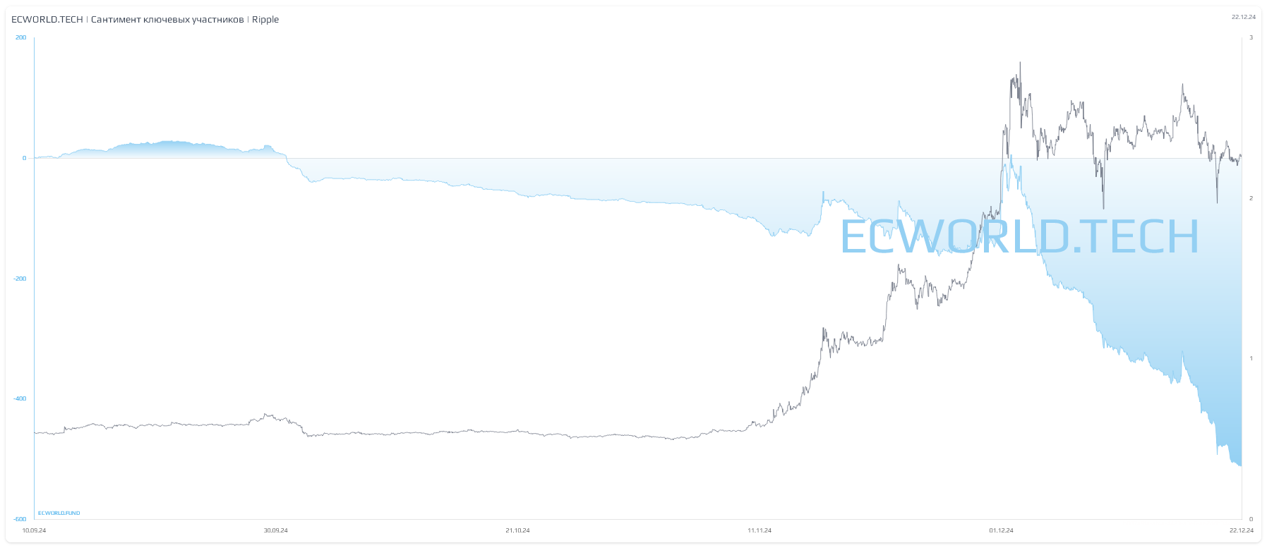 Например, в записи от 22 декабря 2024 года Криптовалюты: внутри трампо-ралли в демонстрируемых графиках Сантимента было отлично видно, что происходит в большинстве монет: